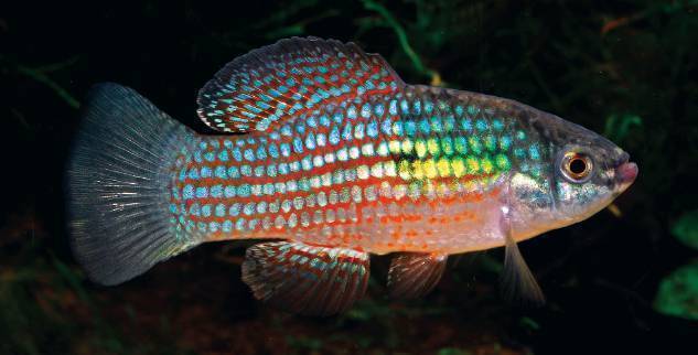 American Flagfish (Jordanella floridae) A bold, colourful native fish with striking red, white, and blue patterning and excellent algae-eating ability