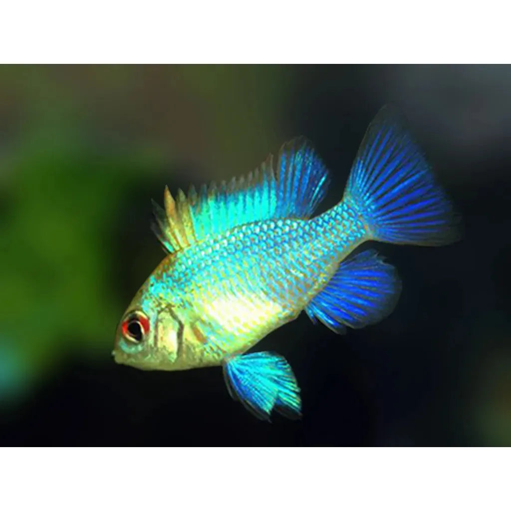 The Electric Blue Ram is a stunning dwarf cichlid, admired for its vibrant iridescent blue coloration and peaceful temperament. This small yet striking fish thrives in well-planted aquariums with soft, warm water and gentle filtration. Unlike many cichlids, it is relatively peaceful and does well in community tanks with similarly calm tankmates.