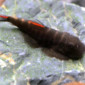 The Scarlett Borneo Sucker is a striking species of hillstream loach native to the fast-flowing streams of Borneo. It features a flattened, suction-cup-shaped body designed to cling to rocks in strong currents, with vivid red, orange, and blue coloration that intensifies in mature males. Peaceful and fascinating to watch, these fish prefer cool, oxygen-rich water with plenty of smooth stones and algae-covered surfaces to graze on. They do best in river-style aquariums with excellent flow and stable water quality.