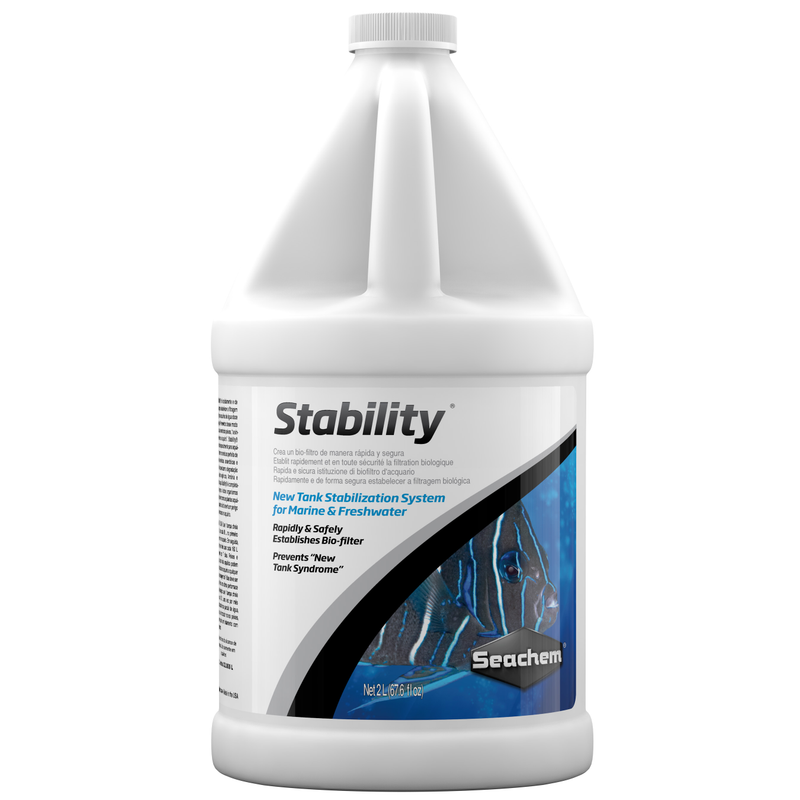 Stability® will rapidly and safely establish the aquarium biofilter in freshwater and marine systems, thereby preventing the #1 cause of fish death: "new tank syndrome". Stability® is formulated specifically for the aquarium and contains a synergistic blend of aerobic, anaerobic, and facultative bacteria which facilitate the breakdown of waste organics, ammonia, nitrite, and nitrate. The bacteria employed by Stability® are non-sulfur fixing and will not produce toxic hydrogen sulfide. Stability® is completely harmless to all aquatic organisms as well as aquatic plants, thus there is no danger of over use.