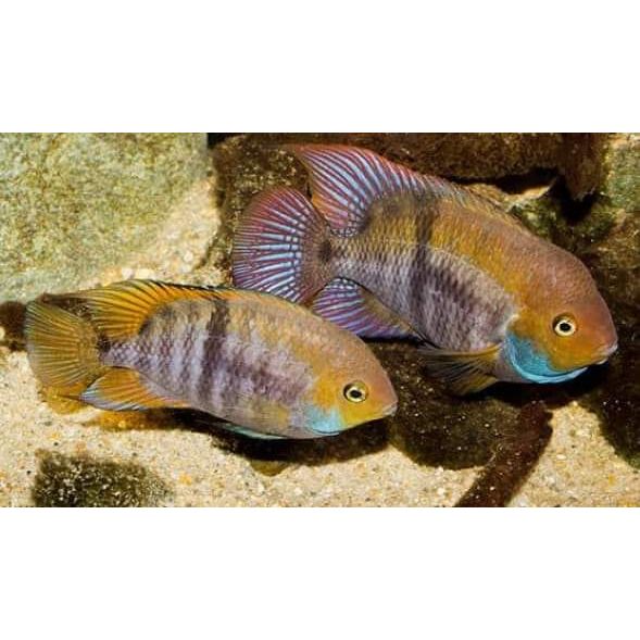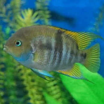 The T-Bar Cichlid is a vibrant and distinctive species of freshwater fish, known for the characteristic "T" shape marking on its body, which gives it its name. These cichlids have a mix of beautiful colors, ranging from silvery gray to yellow and orange with dark vertical stripes. T-Bar Cichlids are semi-aggressive and can be territorial, especially during breeding, so they are best kept in larger tanks with other robust and similarly sized fish. Their striking appearance and bold personality make them a unique addition to a community aquarium, but care should be taken to avoid keeping them with overly peaceful or smaller species.