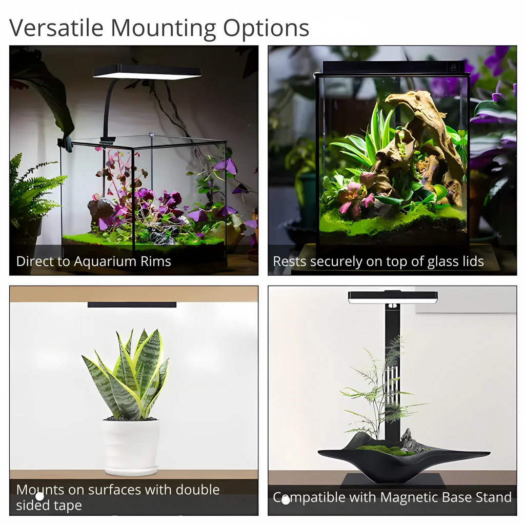 Engineered for serious aquascapers, this upgraded v2.0 model combines high-output RGB + UV LEDs to bring out the deepest greens, the richest reds, and the most vibrant natural tones in your aquatic plants and fish. The addition of UV diodes enhances pigment production and plant coloration, while the wide-spectrum RGB blend supports lush, healthy growth.
