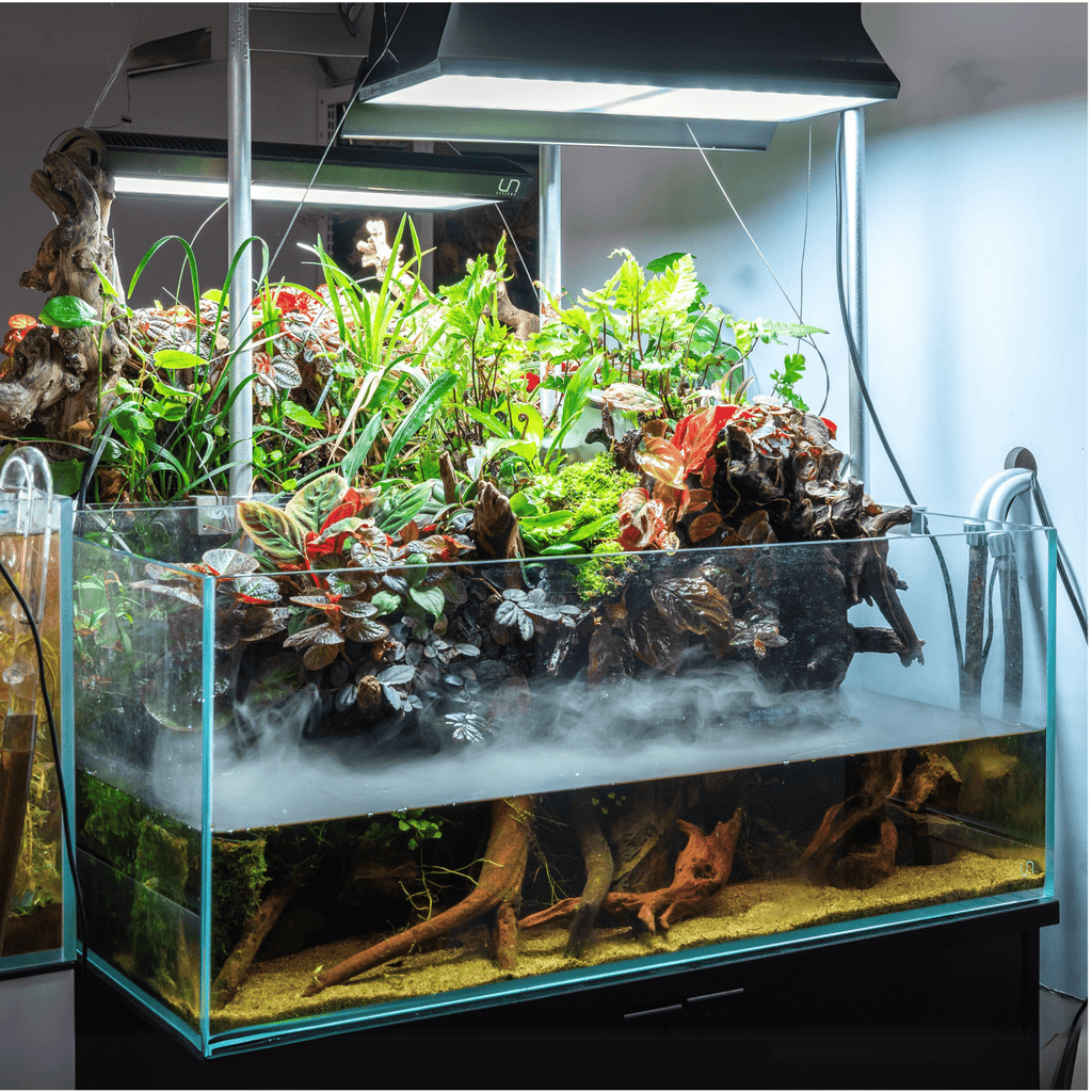 Using advanced ultrasonic misting technology, this unit produces a fine, cool mist that increases humidity levels, enhances plant health, and adds a captivating visual fog effect to your display. It’s quiet, energy-efficient, and completely safe for both aquatic life and plants.
